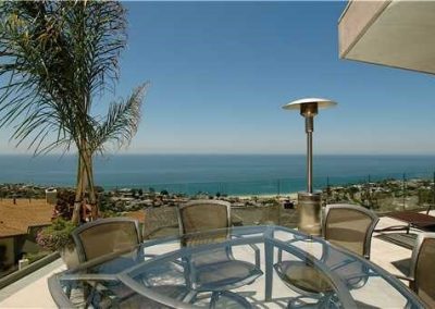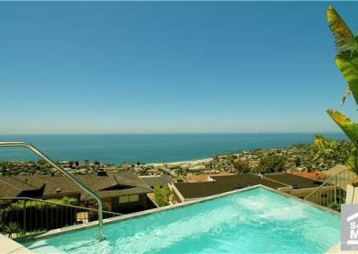 One of the most outstanding views in Laguna Beach! Directly over main beach looking up and down the coast. Like new, contemporary gated residence with state-of-the-art features, including CAT 5; surround sound, security, flat screen TVs, etc. Single level home with 3 bedrooms, 3.5 baths, plus bonus/exercise room, and family room. Spacious view terraces, water features and a spectacular infinity edge spa. Gated entry with extra parking.