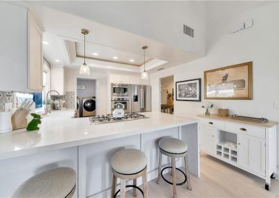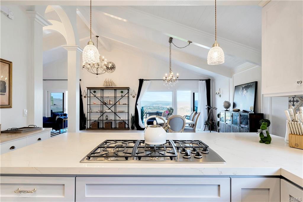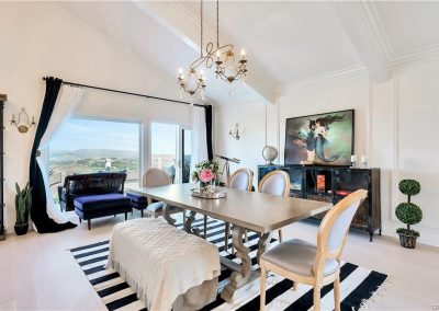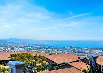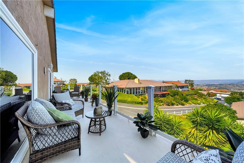Welcome to your place in the clouds! Nestled at the top of summit in Laguna Niguel, spectacular views abound from this stunning, single level home that captures panoramic views of the mountains, sparkling lights and the coastline to the Dana Point headlands. The open, flowing floor plan has been extensively remodeled with meticulous attention to detail. The kitchen is appointed with white quartz countertops, custom cabinetry and Bosch stainless steel appliances. A large laundry room/pantry combination and a quiet office space share views of the courtyard. The primary bedroom includes a Custom fitted walk-in closet, an intimate private patio and beautifully tiled bathroom with deep jetted tub. Both bedrooms hold freestanding electric fireplaces and flush mounted ceiling light fans. The stone fireplace holds center court in the great room with vaulted ceilings, arches and custom crown molding and spectacular views. Light hardwood, porcelain brick tile and custom stone floors throughout. This seamless indoor/outdoor design extends to the additional living space on the view deck. Situated on an elevated corner location features a hard to find private gated yard, a two car attached garage with direct access to the house and a Tesla charging station, this unique property is a rare find. As an added bonus, this dream home above the clouds may be purchased completely move-in ready. All of the sophisticated, coastal-chic furniture and furnishings, custom framed television with disappearing artwork, dishes, linens and accessories were carefully curated by the bicoastal designer-seller and can be yours. Just bring your bathing suit, Champagne and a good book!