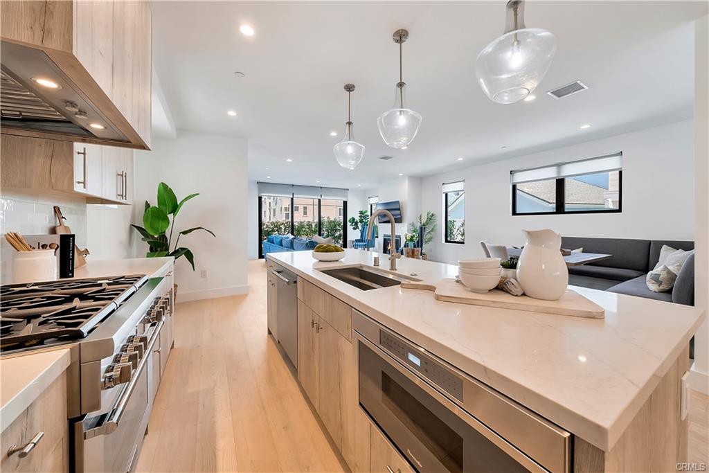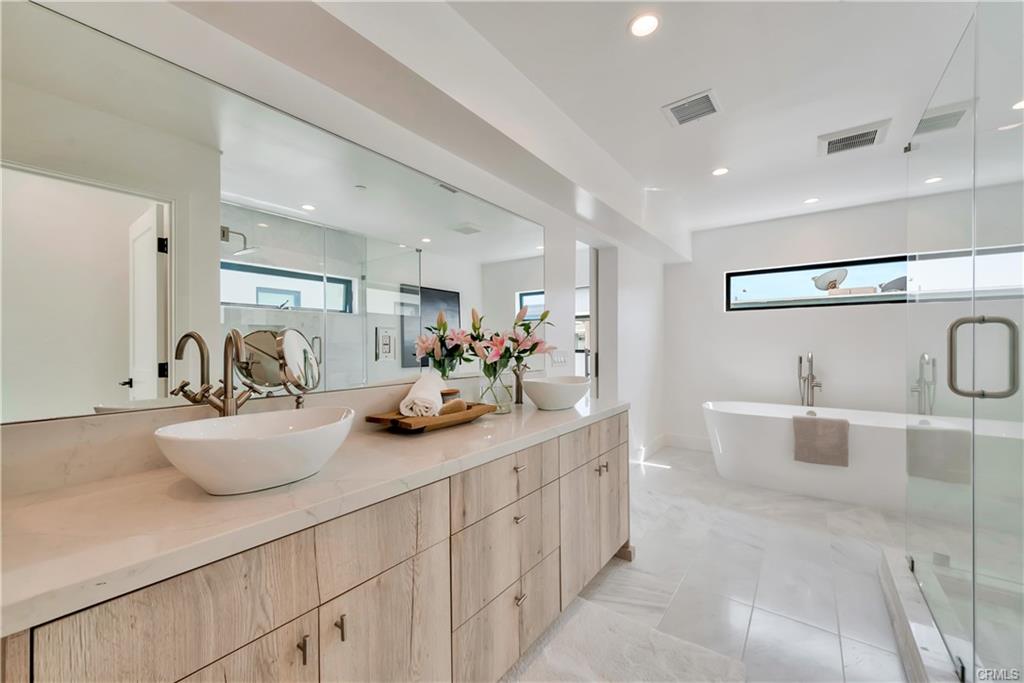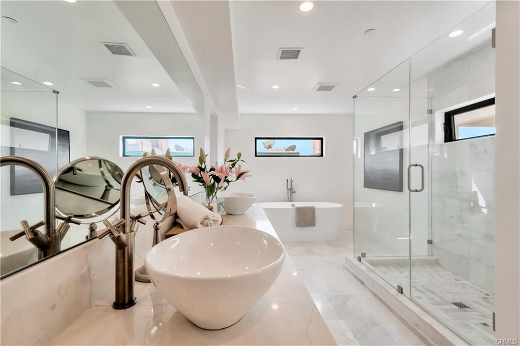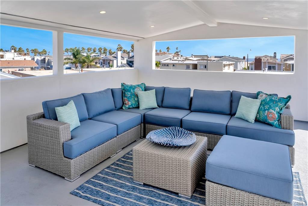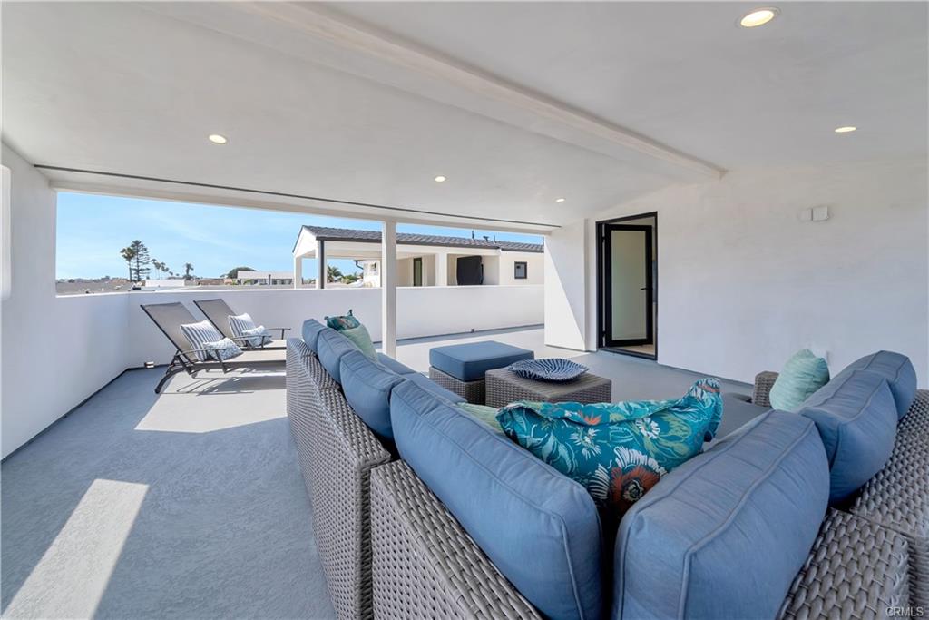 Built in 2022, this Coastal chic four bedroom, four-and-a-half bath home is situated on a corner lot just steps from the sand in Balboa. The carefully designed open floor plan includes en suite bedrooms, each with private balconies. The main level is replete with an airy, light-filled living area, a cozy fireplace, dining area and bar seating at the active island. The chef’s dream kitchen is equipped with a Thermador appliance suite, a stainless farmhouse sink, warm light wood cabinets and a large walk-in pantry. A dutch door welcomes guests and stacking glass doors extend the main level to the front patio surrounded by lush planting. The home boasts an elevator serving all three levels including the spacious wrap around roof deck featuring views of the blue Pacific. The second floor is home to 3 bedrooms, a family room and a convenient laundry room. The sleek primary suite includes a large private balcony, spacious walk-in closet and a luxurious spa bathroom with dual vanities, a large soaking tub, oversized walk-in shower clad in marble and encased in glass doors, custom wood cabinetry with marble countertops. The 4th bedroom is on the top floor with a private patio leading to the wrap around deck with both covered and open lounging areas. The ground floor features direct access to the two car garage and a deluxe beach shower. Ideally located, just steps from the bay and miles of Newport’s pristine beaches and bike trails, the famous Balboa Island Ferry, shops and restaurants.