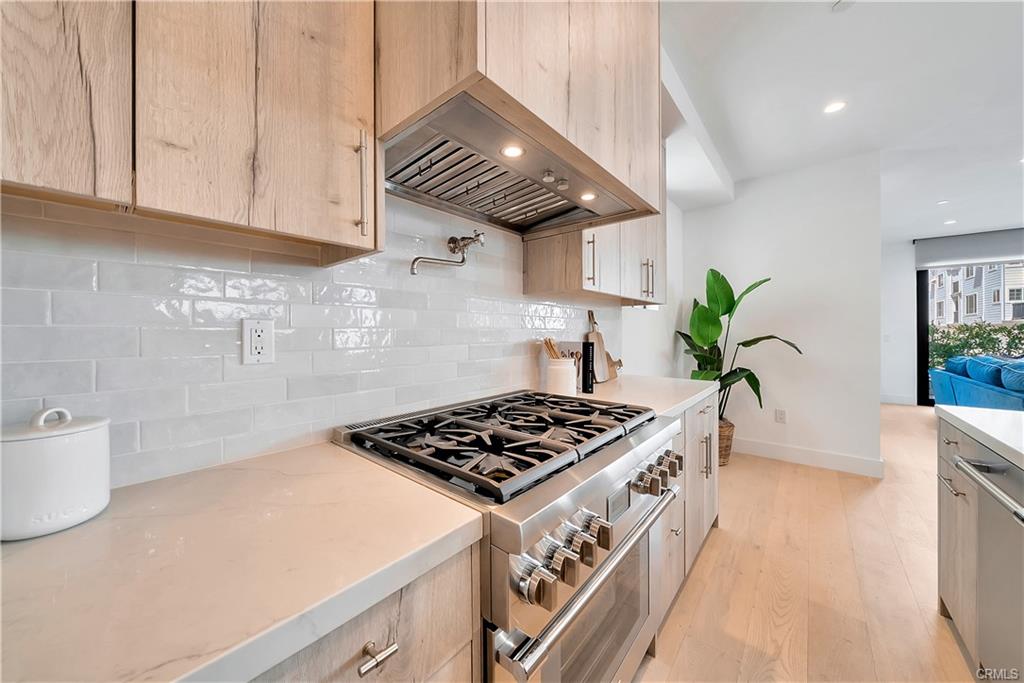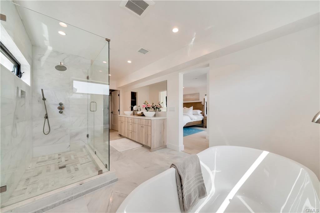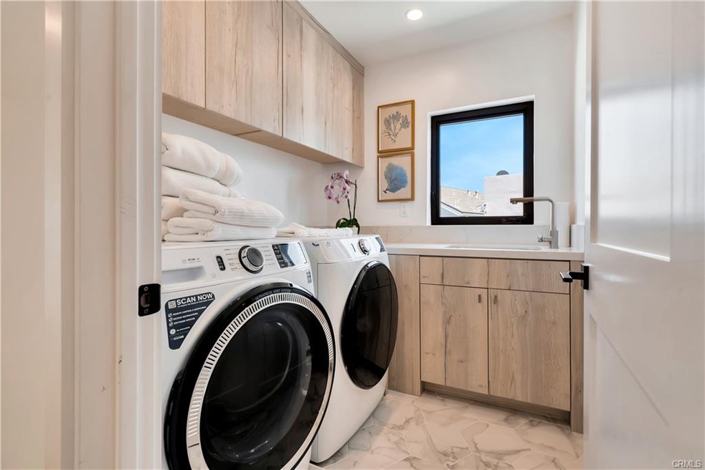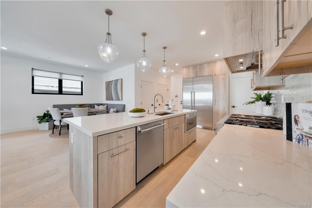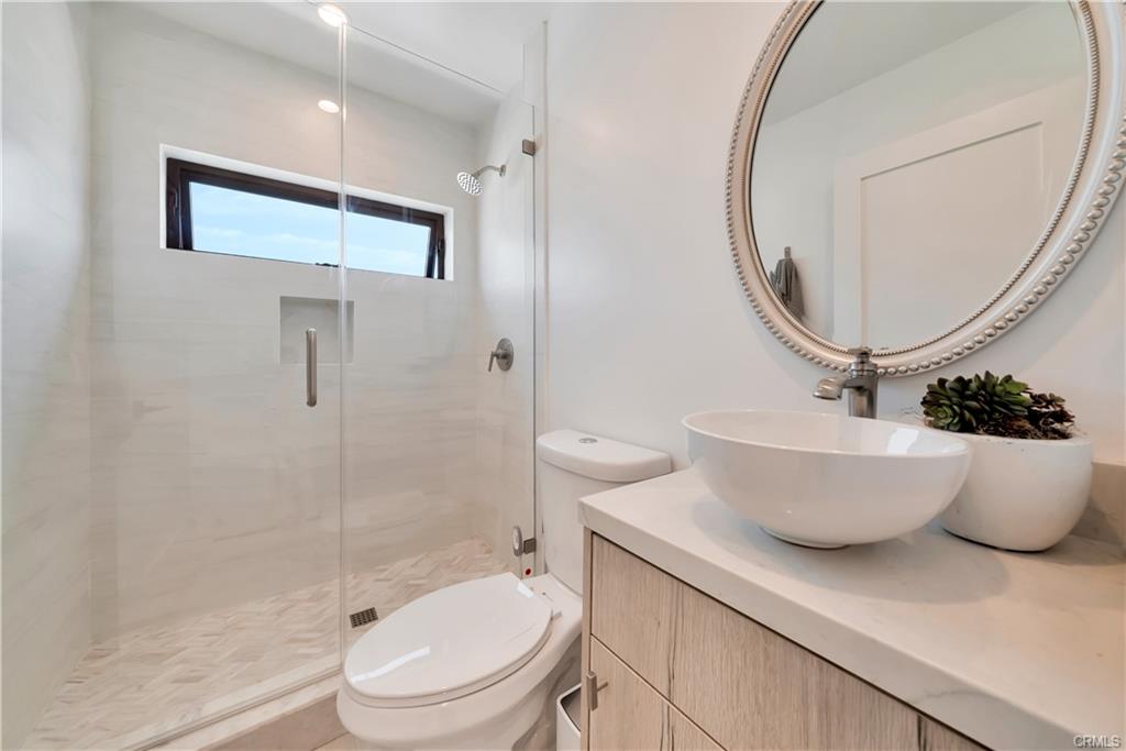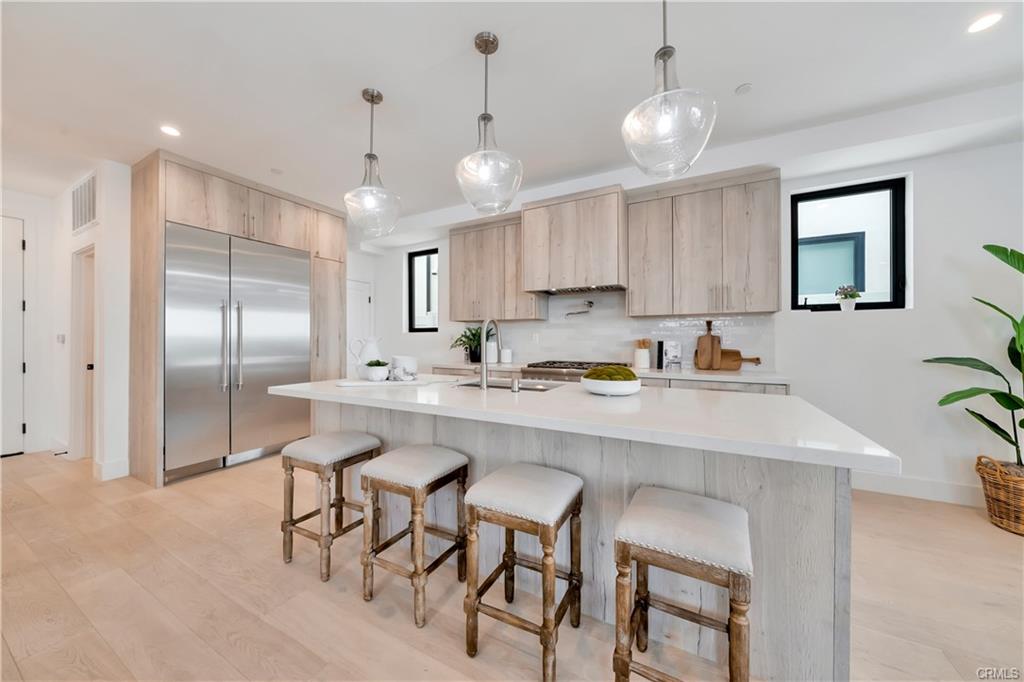 Built in 2022, this Coastal chic four bedroom, four-and-a-half bath home is situated on a corner lot just steps from the sand in Balboa. The carefully designed open floor plan includes en suite bedrooms, each with private balconies. The main level is replete with an airy, light-filled living area, a cozy fireplace, dining area and bar seating at the active island. The chef’s dream kitchen is equipped with a Thermador appliance suite, a stainless farmhouse sink, warm light wood cabinets and a large walk-in pantry. A dutch door welcomes guests and stacking glass doors extend the main level to the front patio surrounded by lush planting. The home boasts an elevator serving all three levels including the spacious wrap around roof deck featuring views of the blue Pacific. The second floor is home to 3 bedrooms, a family room and a convenient laundry room. The sleek primary suite includes a large private balcony, spacious walk-in closet and a luxurious spa bathroom with dual vanities, a large soaking tub, oversized walk-in shower clad in marble and encased in glass doors, custom wood cabinetry with marble countertops. The 4th bedroom is on the top floor with a private patio leading to the wrap around deck with both covered and open lounging areas. The ground floor features direct access to the two car garage and a deluxe beach shower. Ideally located, just steps from the bay and miles of Newport’s pristine beaches and bike trails, the famous Balboa Island Ferry, shops and restaurants.