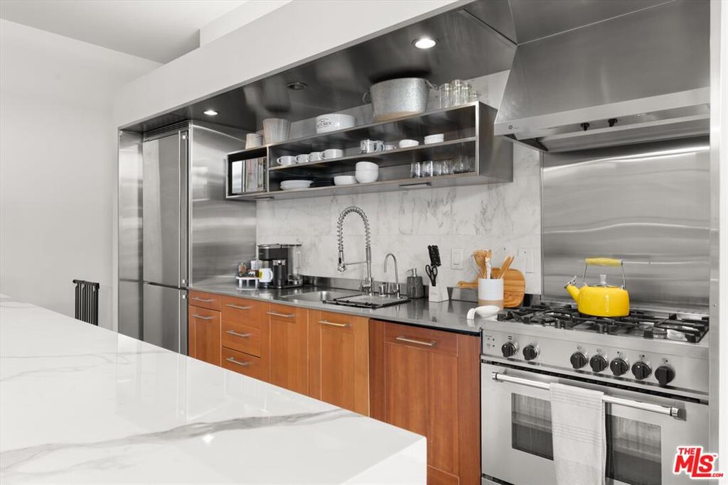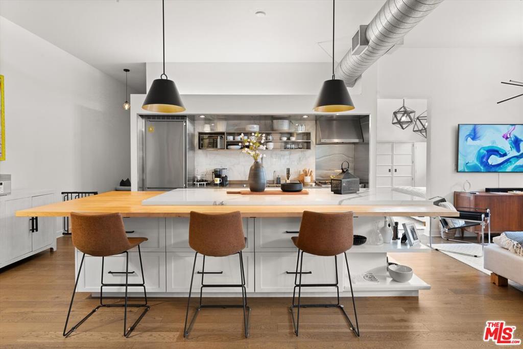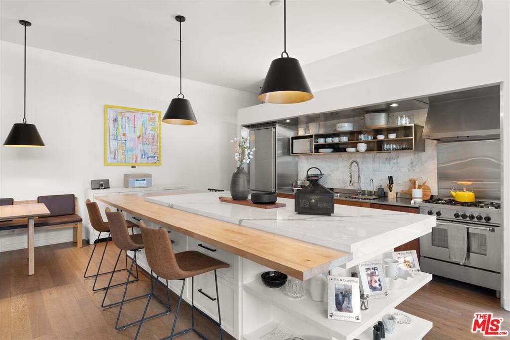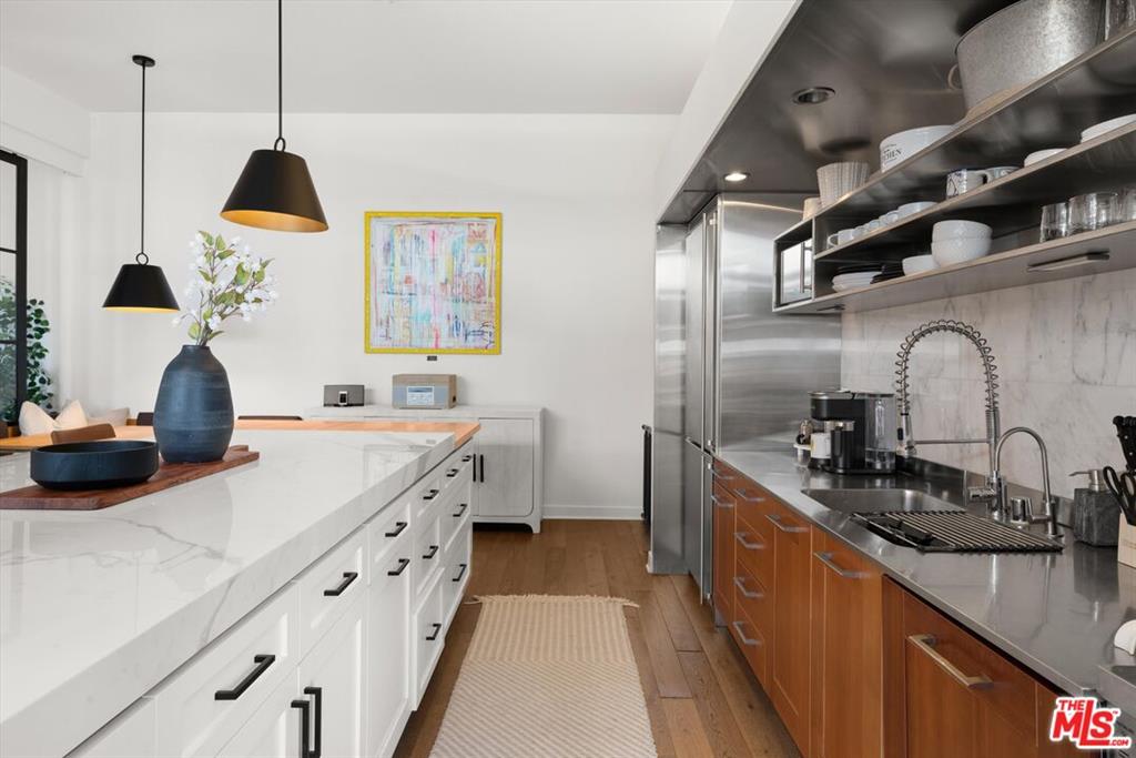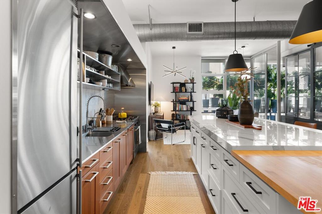 Welcome to this spectacular Marina Del Rey Gallery Loft! Situated in the Marina Arts District, close to Marina Marketplace, Abbott Kinney, restaurants, markets, fitness and entertainment, shopping and the Venice boardwalk. This is a designer’s dream with a cool, New York vibe that features soaring 11-foot ceilings, custom lighting, floor-to-ceiling glass and metal Fleetwood doors, a sophisticated open kitchen with an oversized marble and wood island and high-end stainless-steel appliances. The spacious primary suite offers plenty of room for a king-sized bed, a desk and extra seating. A walk-in custom closet and a spa-like bathroom with an oversized soaking tub and a glass enclosed shower complete this suite. The secondary bedroom is drenched in light and opens to a beautiful bathroom with industrial fixtures. If indoor/outdoor living is what you are looking for, or the perfect place to work from home, look no further. The Fleetwood doors slide back to open to the large, covered patio to expand your living space.