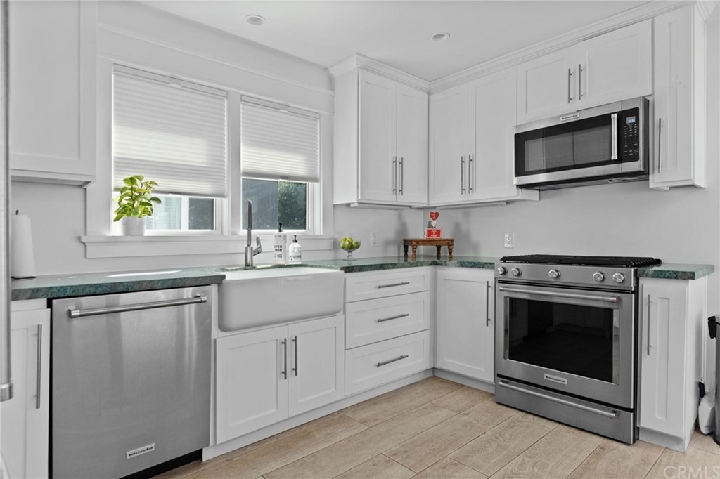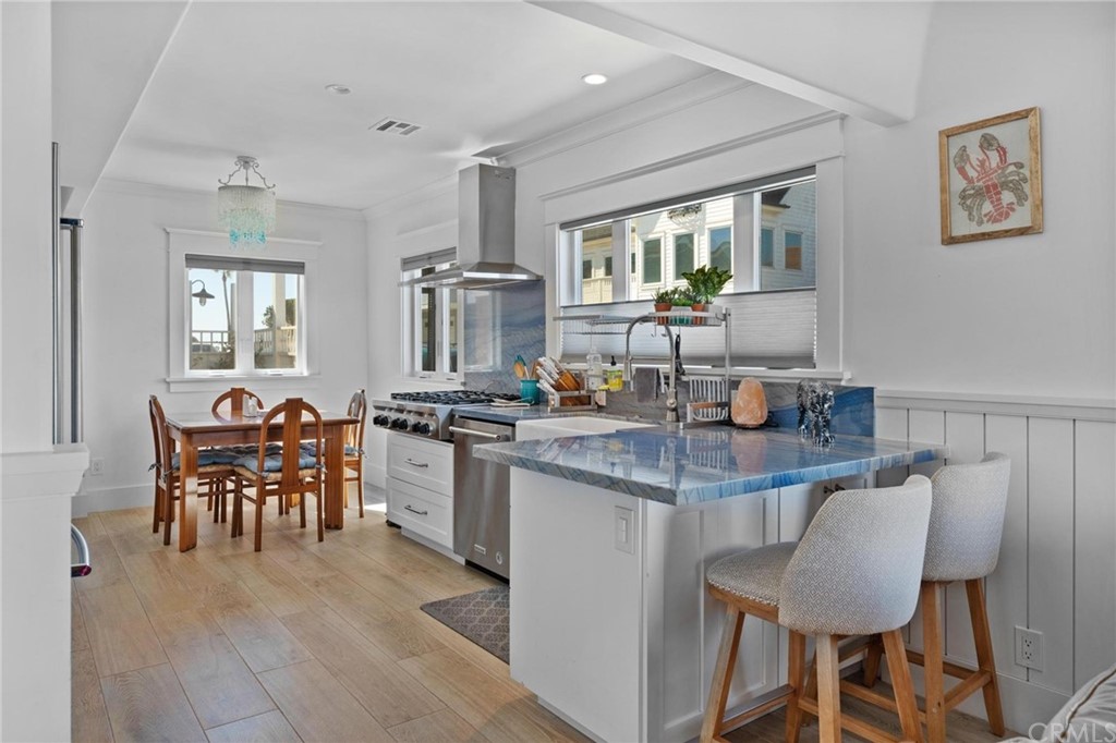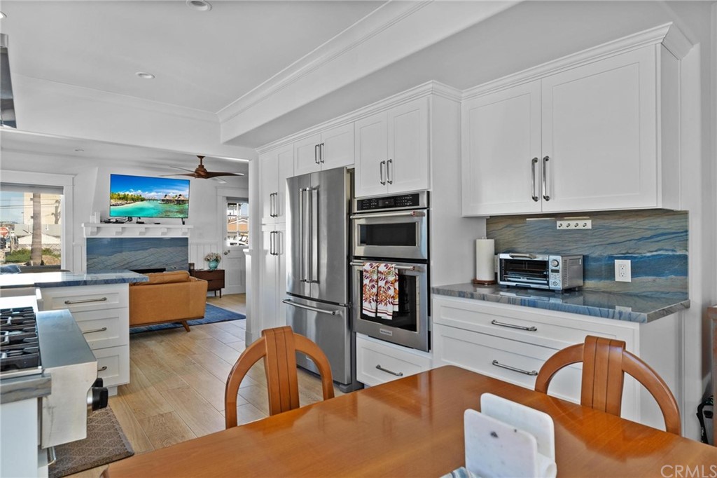 Fabulous find- two on a lot! 2 newly remodeled 3 bedroom houses on an oversized corner lot just one house from the oceanfront with ocean and bay views AND 2 SHORT TERM RENTAL PERMITS. Both homes feature wide plank wood floors, Shiplap walls, KitchenAid stainless steel appliances, farmhouse sinks, white cabinets, beautiful tiled baths, new light fixtures, skylights, windows and ceiling fans throughout. 951 W Balboa is a charming vintage shingled cottage with a distinctive brick fireplace. The 3 bedroom and 3 bath home with shiplap walls, gorgeous Azul Macubas Quartzite slab countertops, backsplash and fireplace wall also has a finished attic space and enjoys a private back yard with retractable awning, loads of room for entertaining family and guests.
