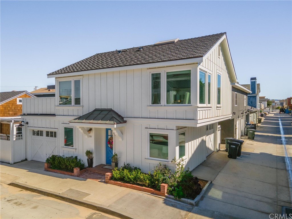 The bright blue dutch door opens to 110 10th Street-a 3 bed, 2 bath two story with a bright open floor plan to take full advantage of the amazing ocean and bay views. The second floor main bedroom with a soaring beamed ceiling opens to the roomy deck. There is an attached garage and laundry room.